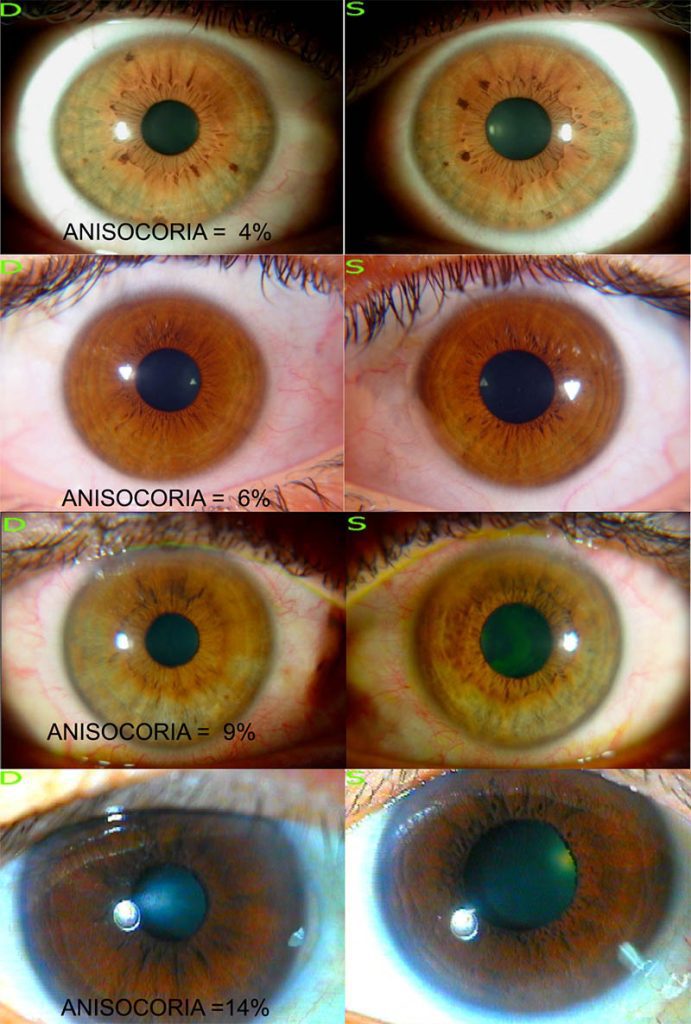 By contrast, true anisocoria is frequently associated with pathology involving the central nervous system and, in some cases, internal organs. It may be observed in a variety of neurological conditions, including encephalitis, neurosyphilis, cerebrovascular disorders, intracranial tumors, basal arachnoiditis, craniocerebral trauma, and multiple cervical spinal cord lesions. True anisocoria may also be associated with certain visceral conditions, such as apical lung pathology, calculous cholecystitis, urolithiasis, and appendicitis.