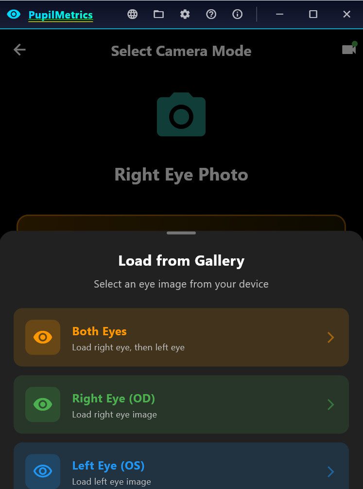 PupilMetrics always captures **right eye first (OD)**, then **left eye (OS)**. This convention matches standard clinical iridology notation. Both images must be captured before analysis can run.