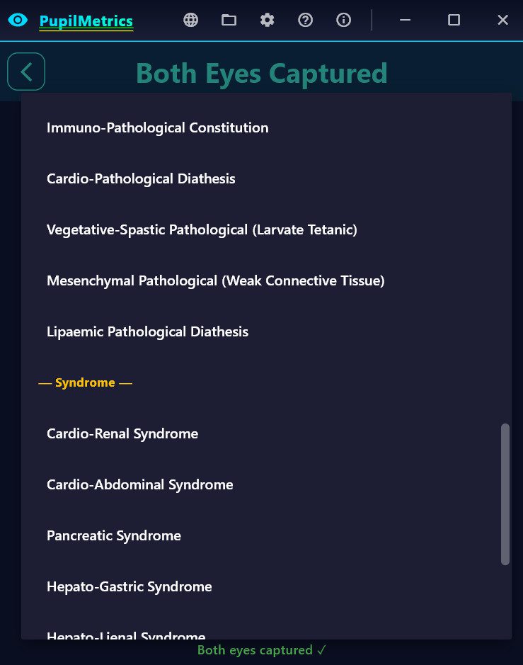 | **Lymphatic-Hypoplastic** | Thickened collarette, crypts, cloudy pupillary zone | Impaired digestion/assimilation, gastric insufficiency, lowered resistance |