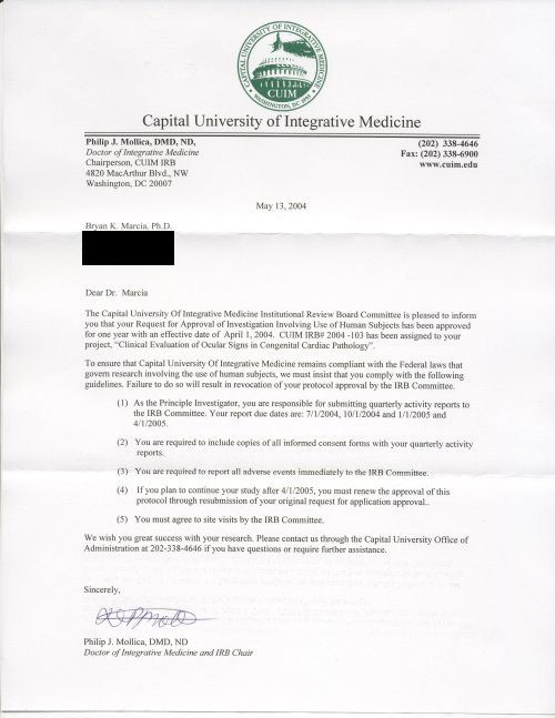 This ongoing research program in iridodiagnostics and non-invasive ocular biomarkers has been conducted under continuous, documented human-subjects ethical oversight since 2004. The original signed approval letter is available upon request to any IRB, publisher, grant agency, or fiscal sponsor.